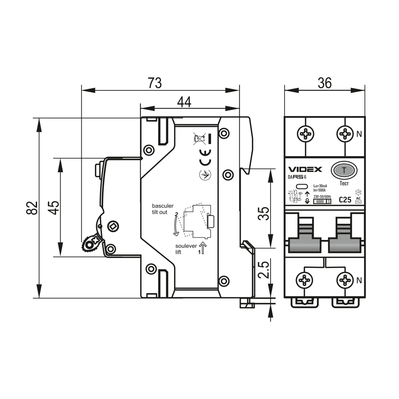 Диференційний автомат VIDEX RESIST АС 2п 30мА 6кА 25А