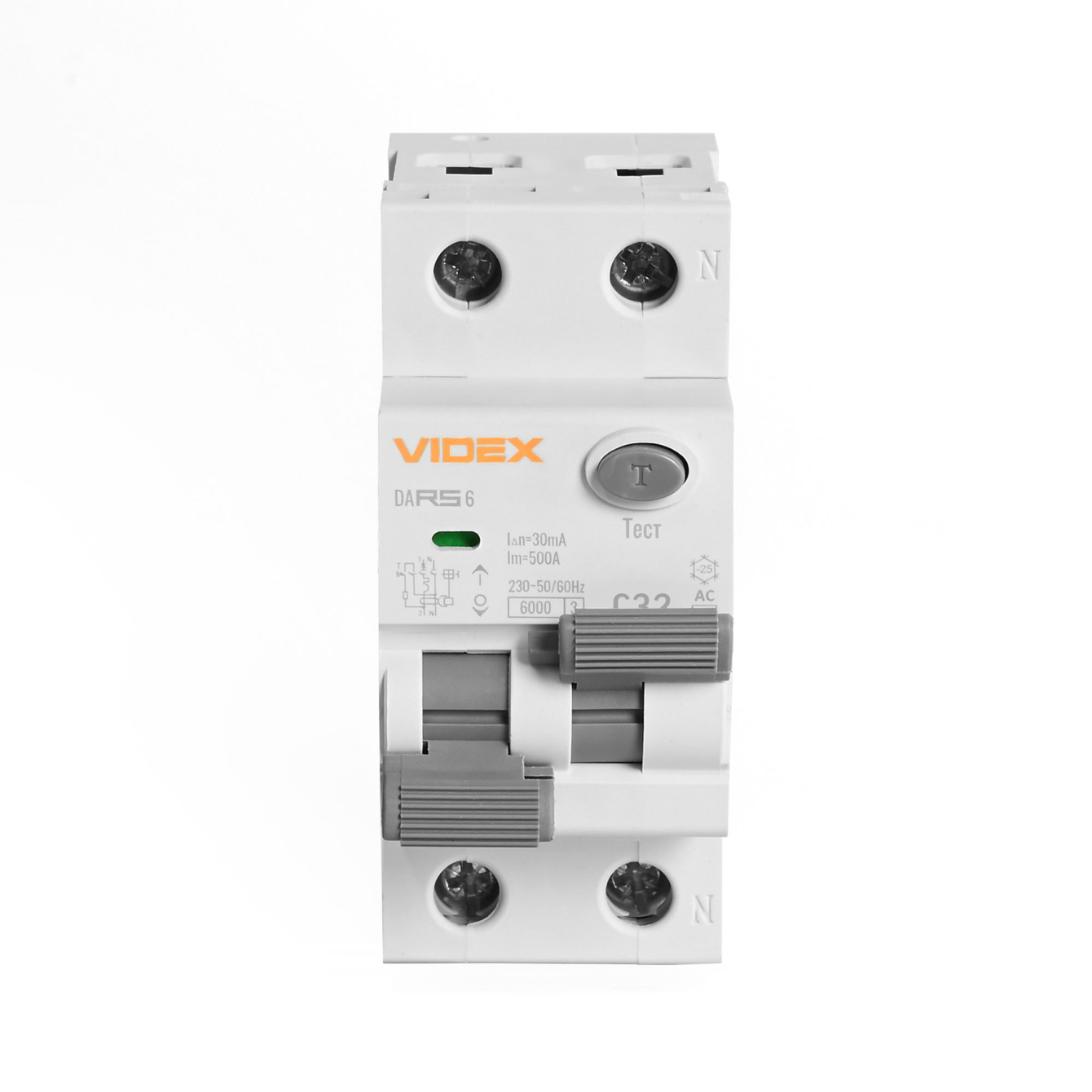 Диференційний автомат VIDEX RESIST АС 2п 30мА 6кА 32А