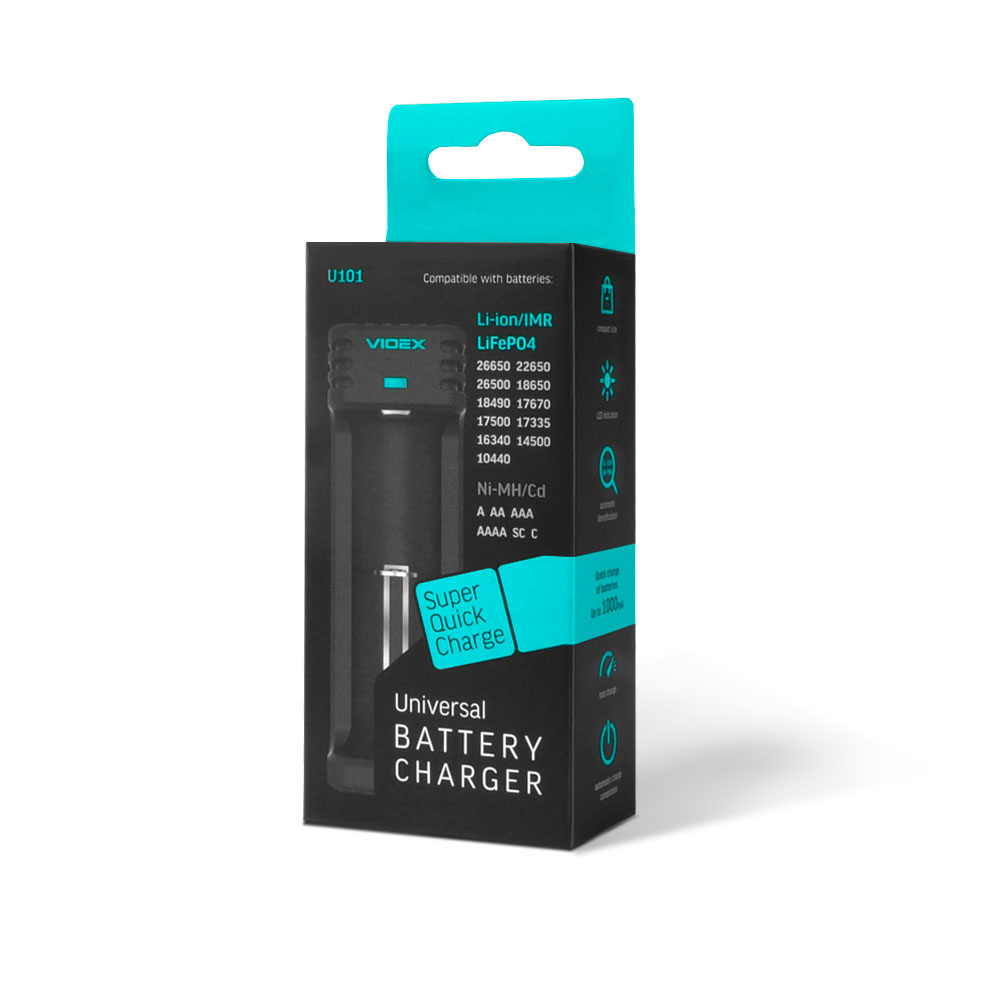 Зарядний універсальний пристрій VIDEX VCH-U101 - призначений для багаторазового заряду акумуляторних елементів живлення.